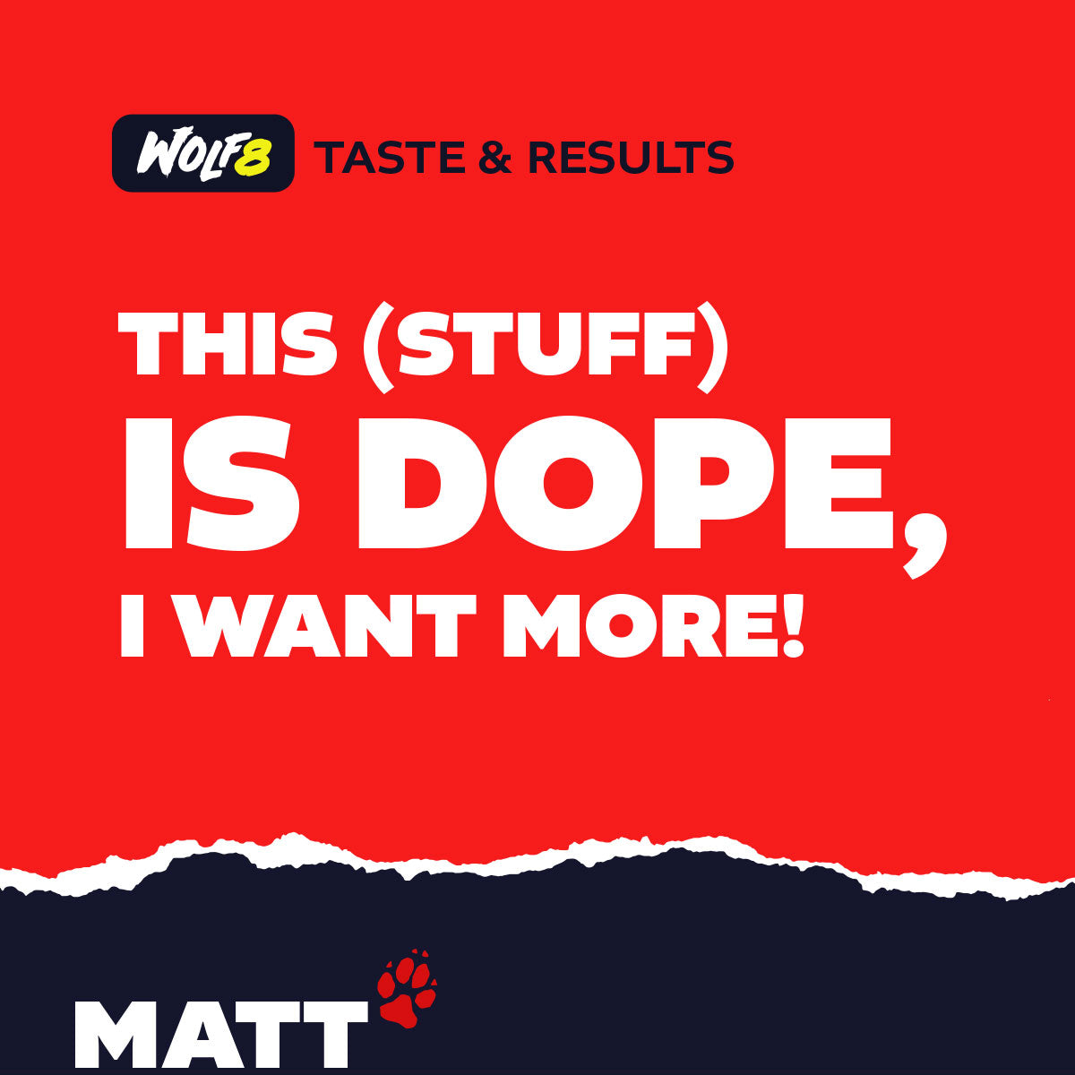 Mountain BikerMatt (an avid mountain biker) gave a glowing 5 star review after trying Wolf8 on a ride and said enthusiastically: "Taste was great. Not too sweet, but also sweet enough." "This S**t is dope, I want more!"